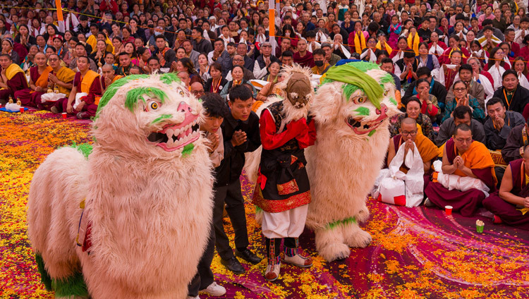 Дорога в Ганден Лачи была усыпана лепестками цветов. Его Святейшество приветствовали артисты, исполнявшие танец долголетия «Таши Шолпа», а также танцоры, представляющие различные регионы Тибета. Поднявшись на веранду, Далай-лама пошутил с танцорами в костюмах снежных львов, а те отвечали радостными танцами. Духовный лидер зажег еще один масляный светильник в знак благоприятного начала церемонии и под большим золотым церемониальным зонтом направился к своему трону в зале собраний Ганден Лачи в сопровождении Гандена Три Ринпоче, настоятелей монастырей Шарце и Джангце, представителя тибетского поселения Мундгод и наставников по дисциплине монастыря Ганден.